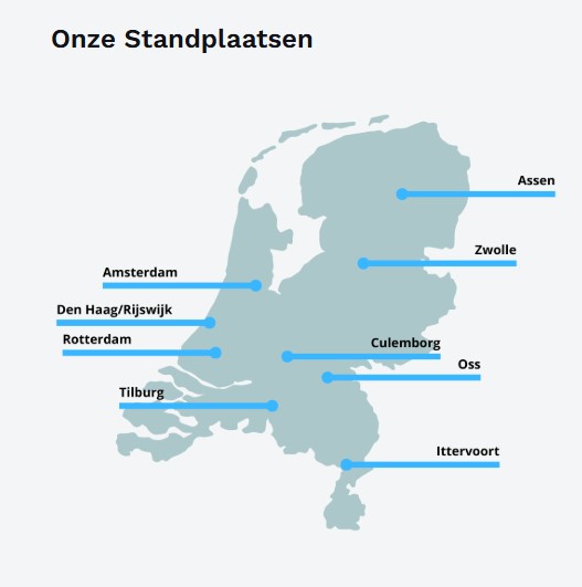 Wij zijn inzetbaar in heel Nederland! Met onze vele standplaatsen zijn wij flexibel inzetbaar.